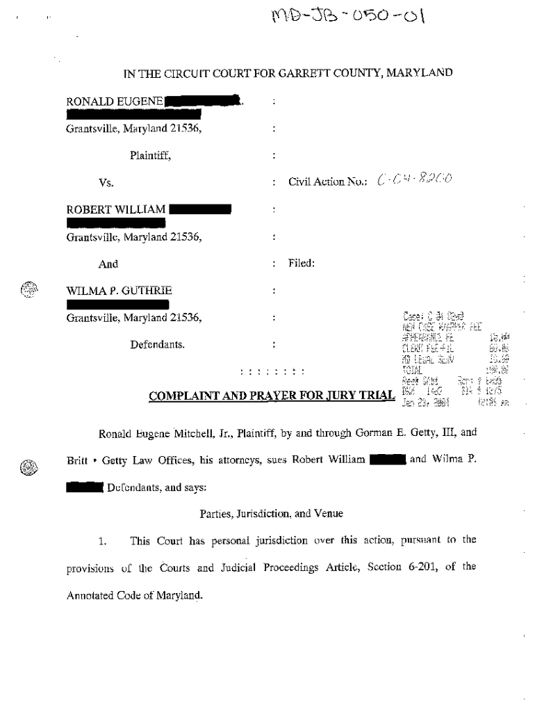 Get the free A01 Complaint and Prayer for Jury Trial - Personal Injury Due to Negligent Operation...