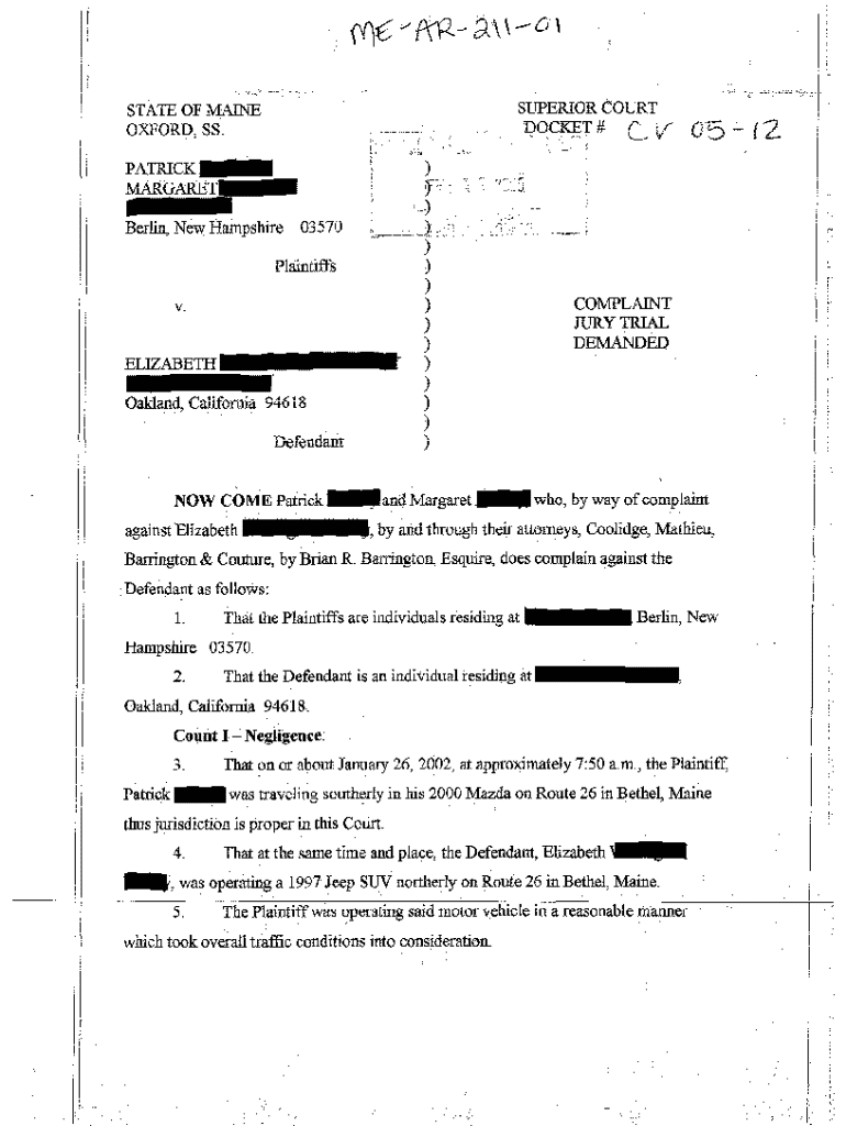 Get the free A01 Complaint - Personal Injury and Loss of Consortium Due to Negligent Operation of...