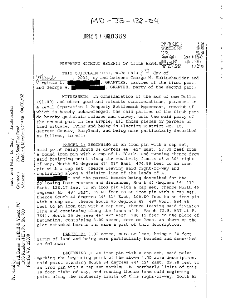 Get the free A04 Original Quitclaim Deed of Defendant's Property