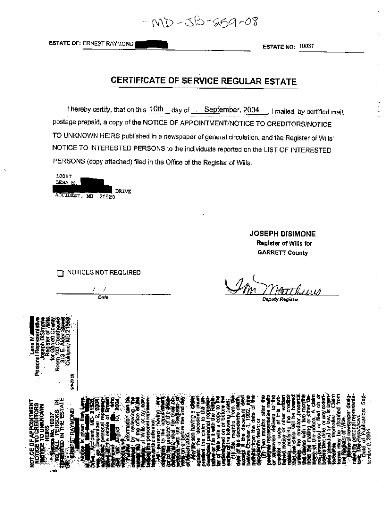 Get the free A08 Certificate of Service Regular Estate