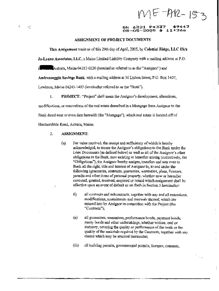 An assignment of project documents is a formal transfer of rights and responsibilities regarding specific project documents from one party to another.
