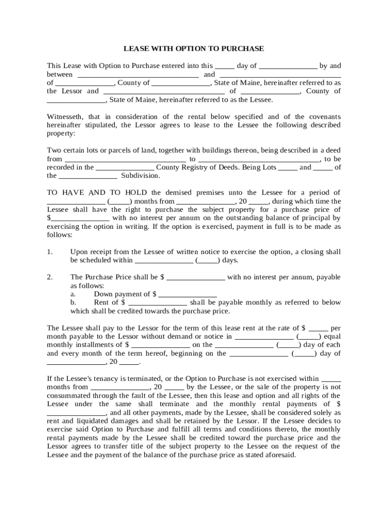 Familiarize yourself with Maine's landlord-tenant laws to ensure your lease with option to purchase complies with state requirements.