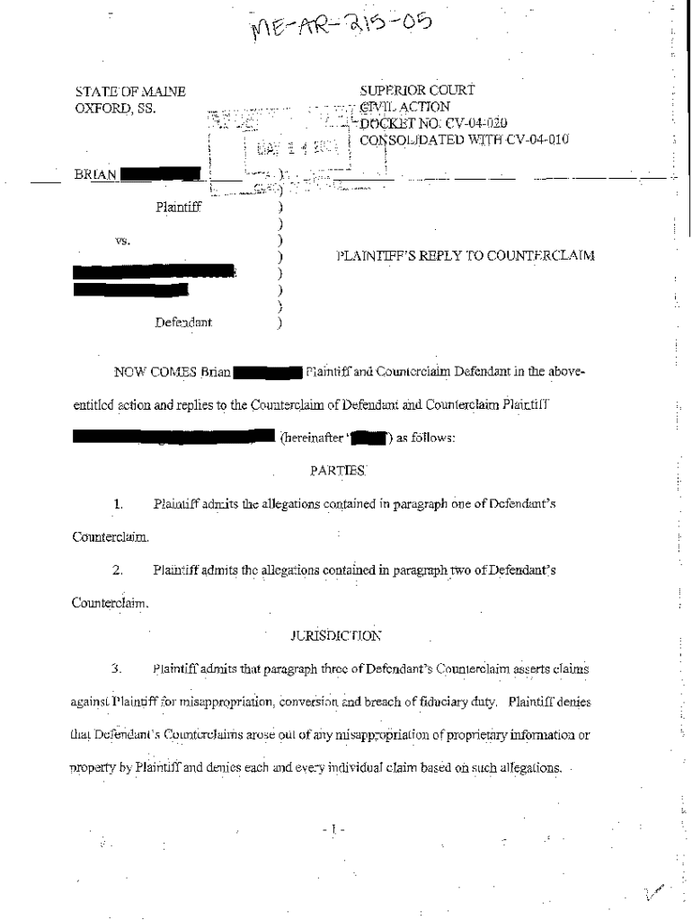 Get the free A05 Plaintiff's Reply to Counterclaim
