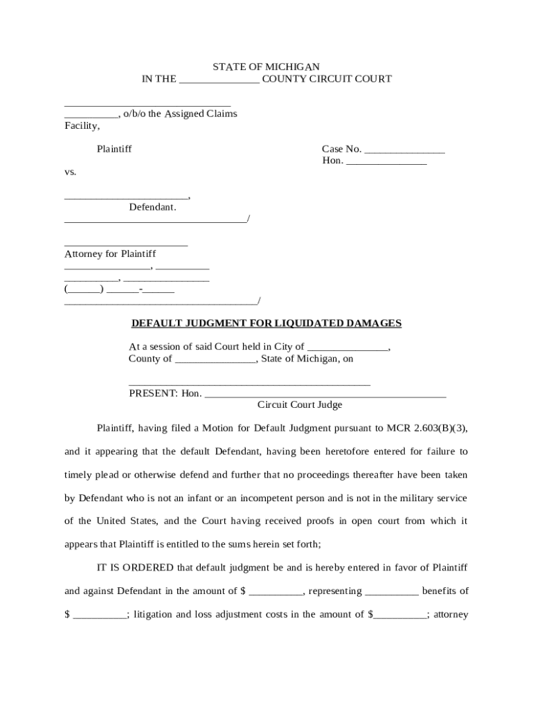 Get the free Default Judgment for Liquidated Damages template