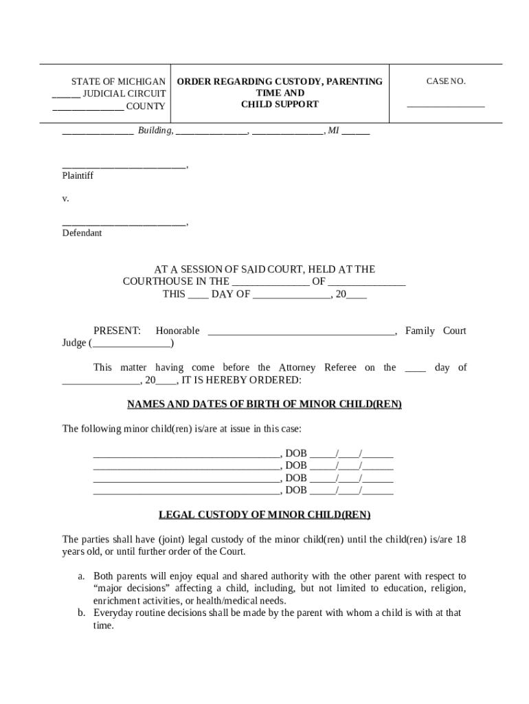 Get the free Michigan Judicial Circuit Court - Order Regarding Custody, Parenting Time (Visitatio...