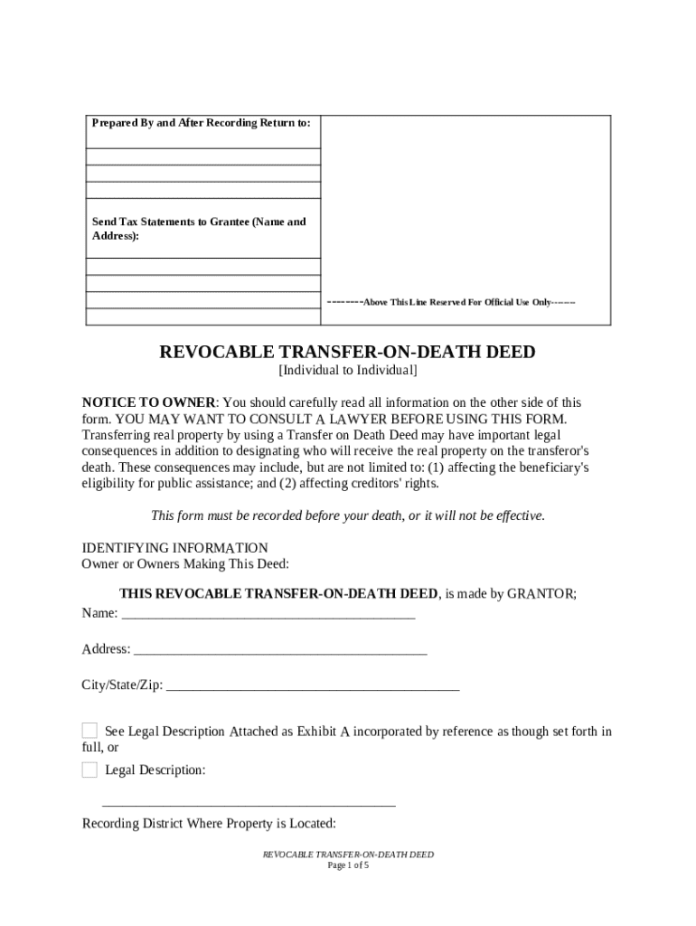 Understand the owner's right to revoke the transfer at any time prior to death, which can be done by filing a new deed or formally revoking the existing one.