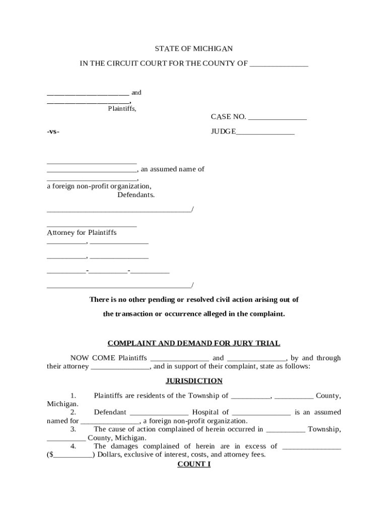 Include relevant court information, such as the Circuit Court for County of Michigan where your case is filed.
