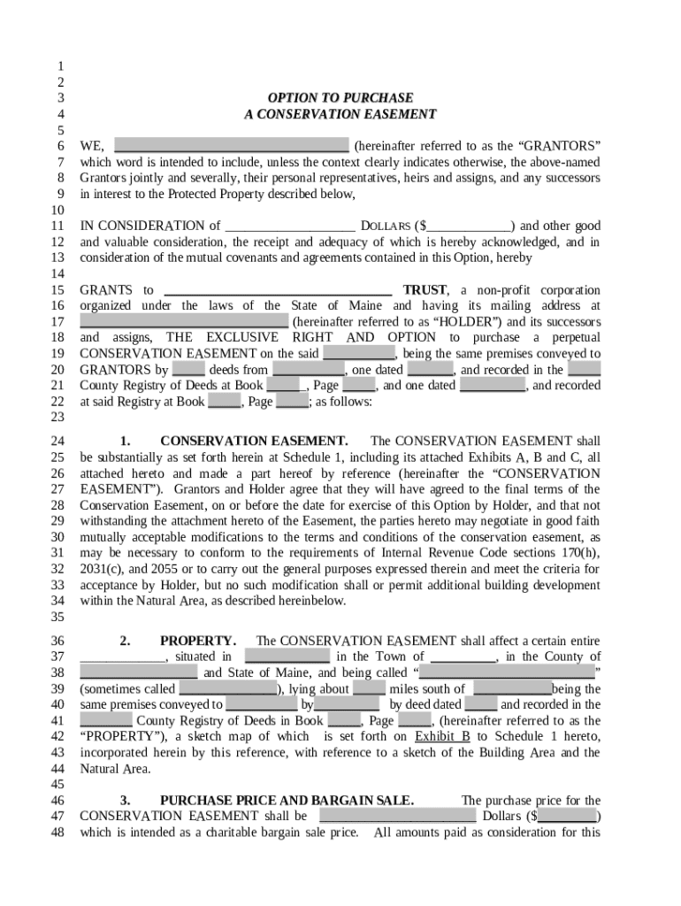 Get the free Option to Purchase a Conservation Easement template