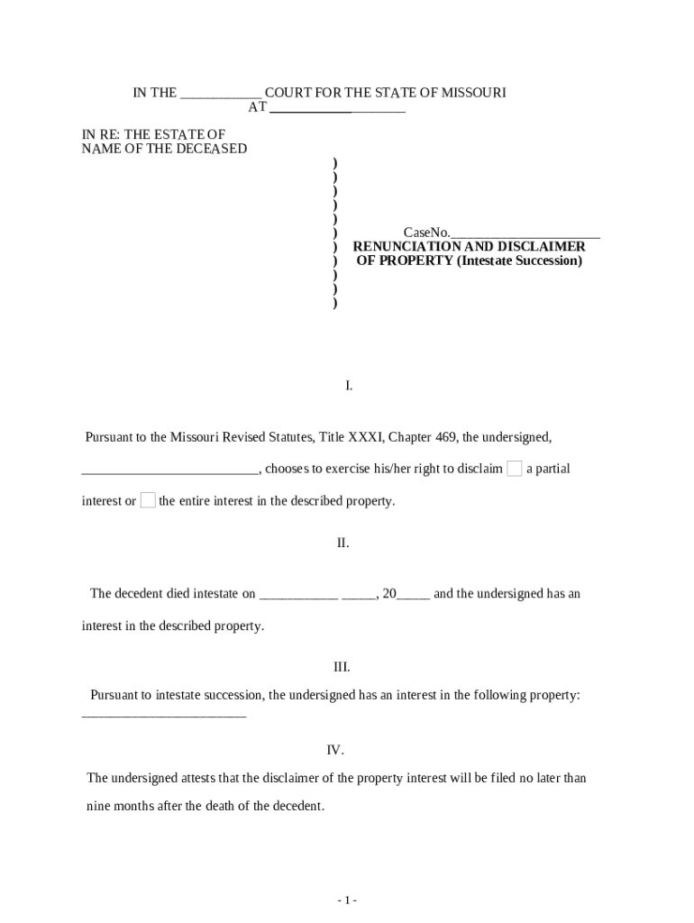 The Missouri Revised Statutes provide guidelines on how a beneficiary can legally renounce their interest.