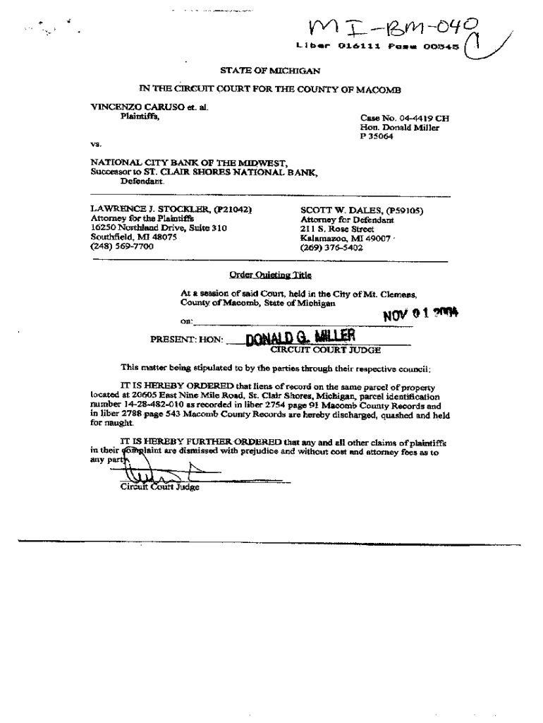 Get the free Order Quieting Title
