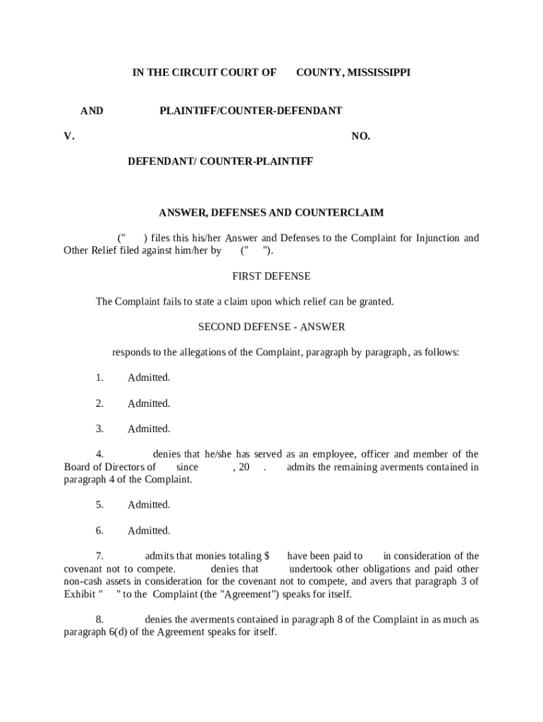 Get the free Answer, Defenses, and Counterclaim template
