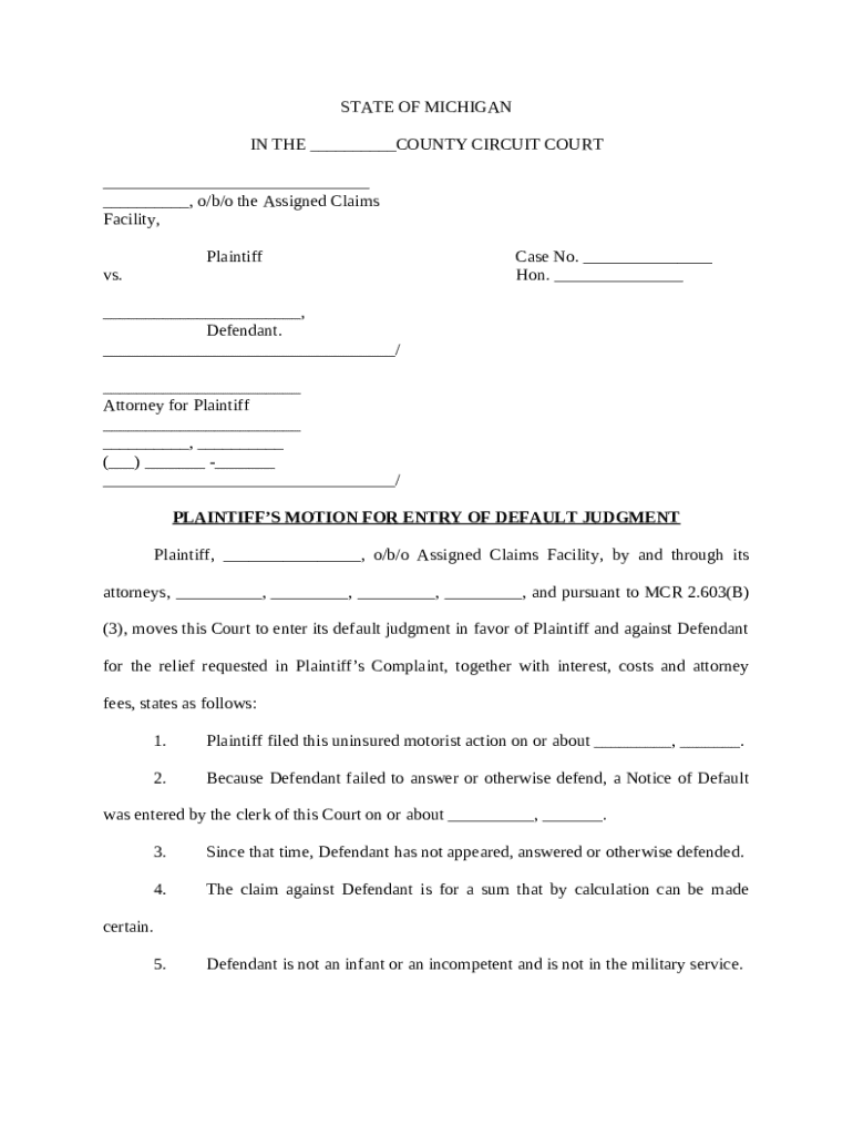 Get the free Plaintiff's Motion for Entry of Default Judgment template