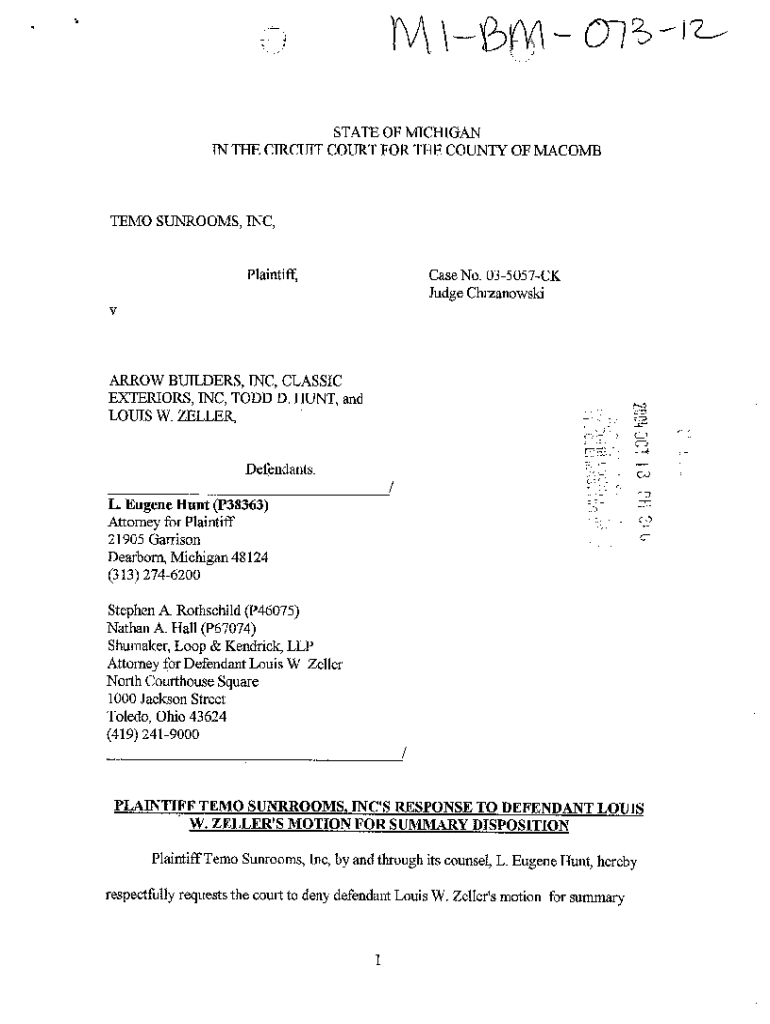Get the free A12 Plaintiff's Response to Defendant Motion for Summary Disposition And Memorandum ...