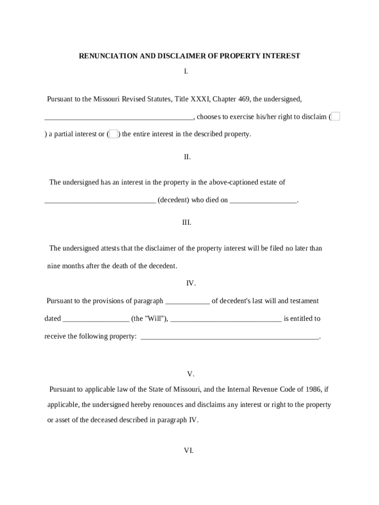 Review Missouri’s laws to ensure compliance when renouncing interests.