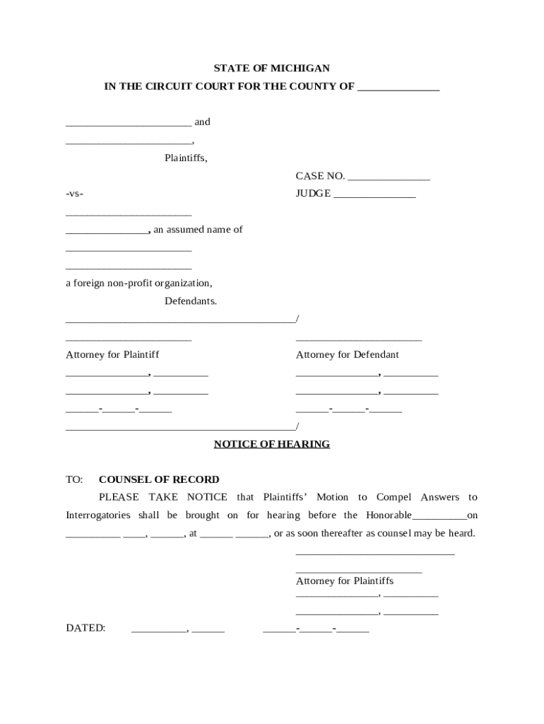 Understanding the key components of a notice of hearing form is essential for accurate completion. Each section is specifically designed to convey vital information to the parties involved.
