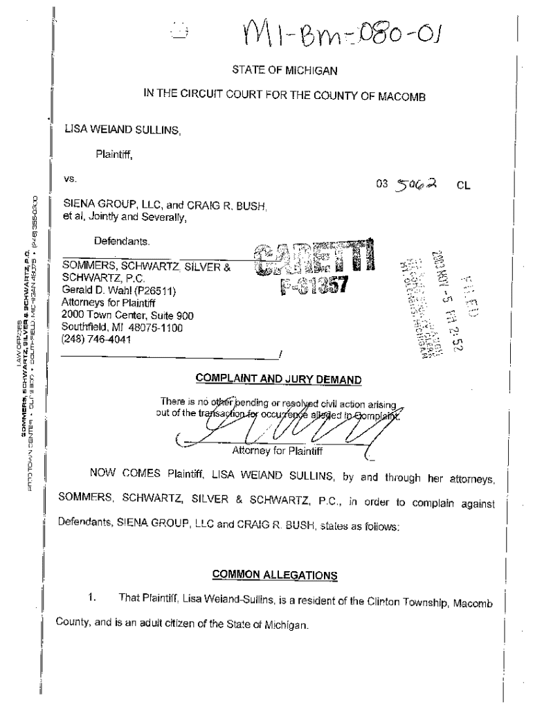 A01 Complaint And Jury Demand regarding Wrongful Termination and Violation of Public Policy in the Sale of Mausoleum Crypts