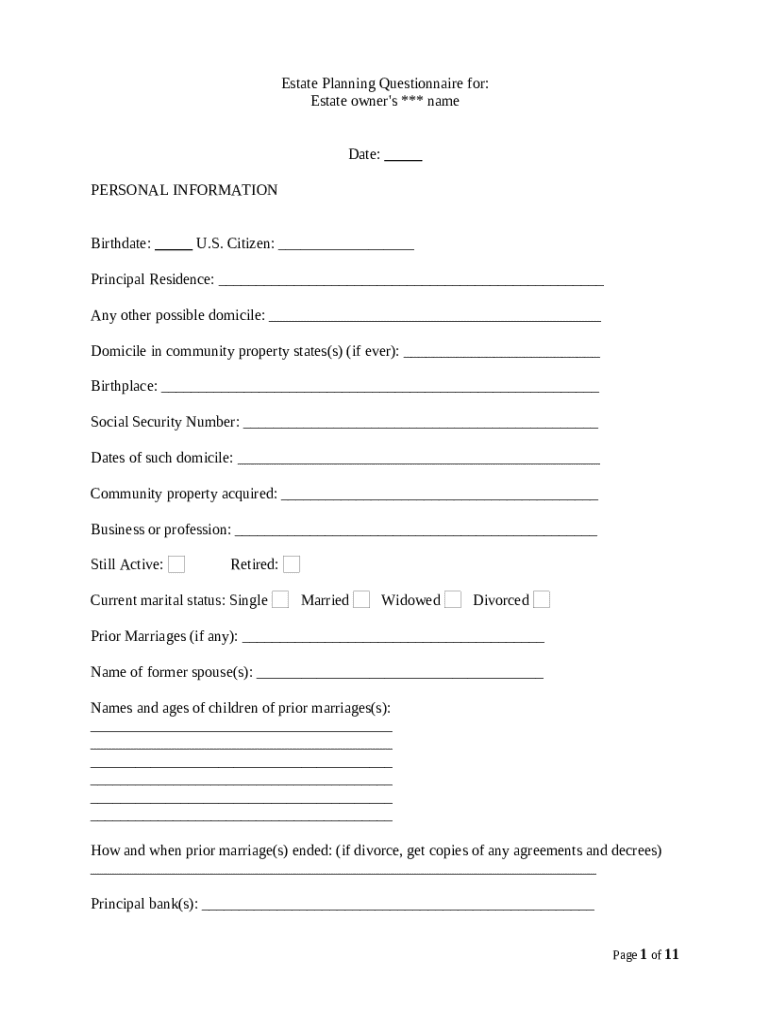 Get the free Estate Planning Questionnaire template