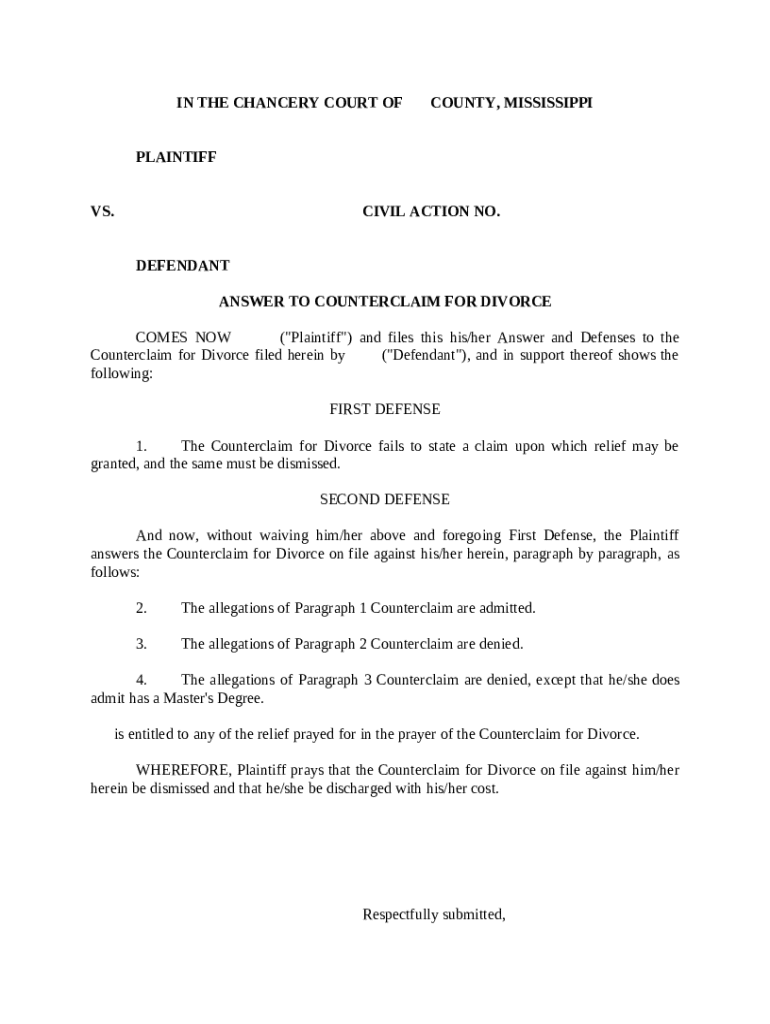 Filing an answer to a counterclaim in divorce proceedings is a crucial legal step. A counterclaim is when the defendant asserts their own claims against the plaintiff, typically within the context of a divorce case. Responding to this counterclaim is essential to protect your rights and interests.