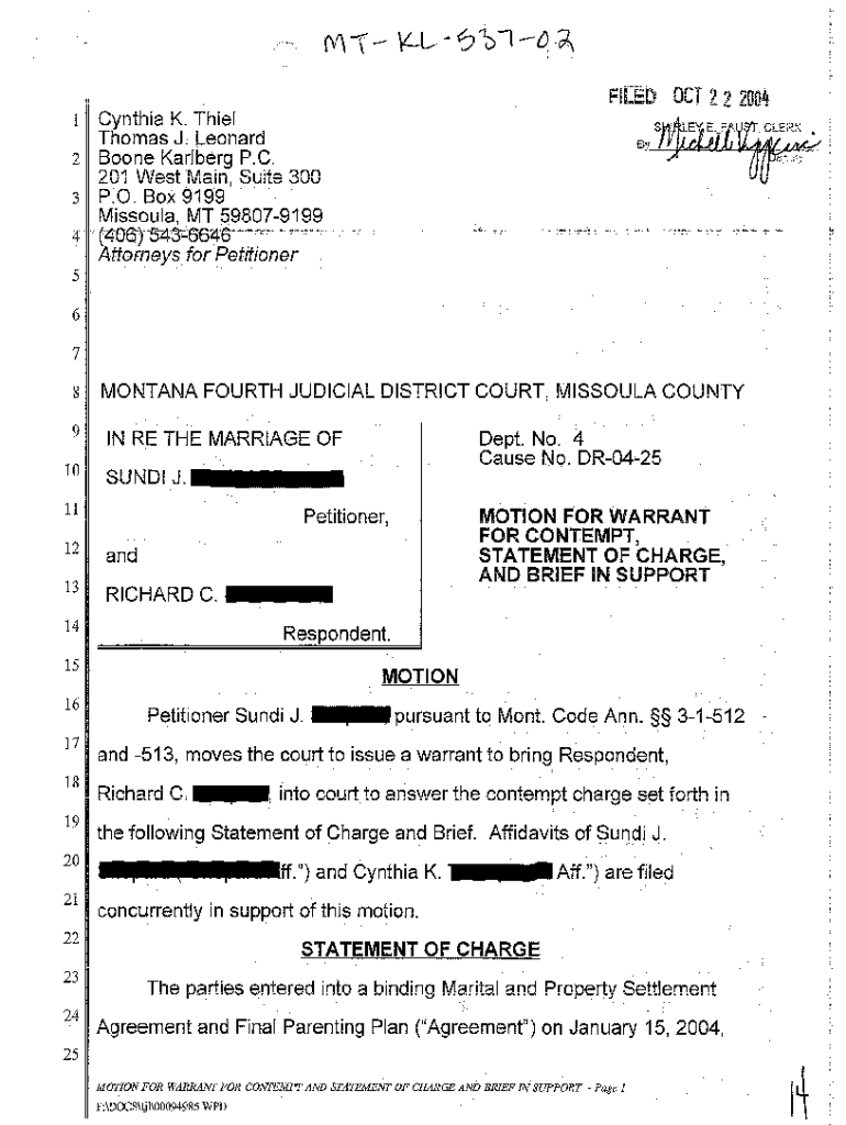A02 Motion for Warrant for Contempt, Statement of Charge, and Brief in Support