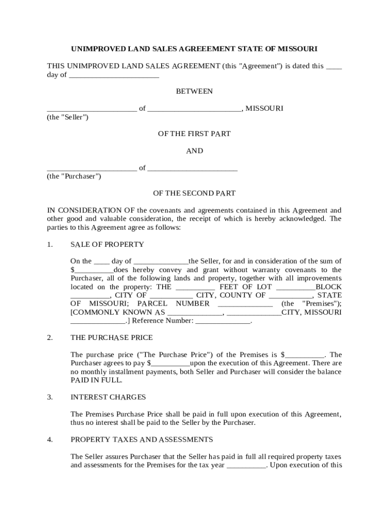 This form is a sales agreement for property that does not have any Physical buildings, additions, or fixtures on land.