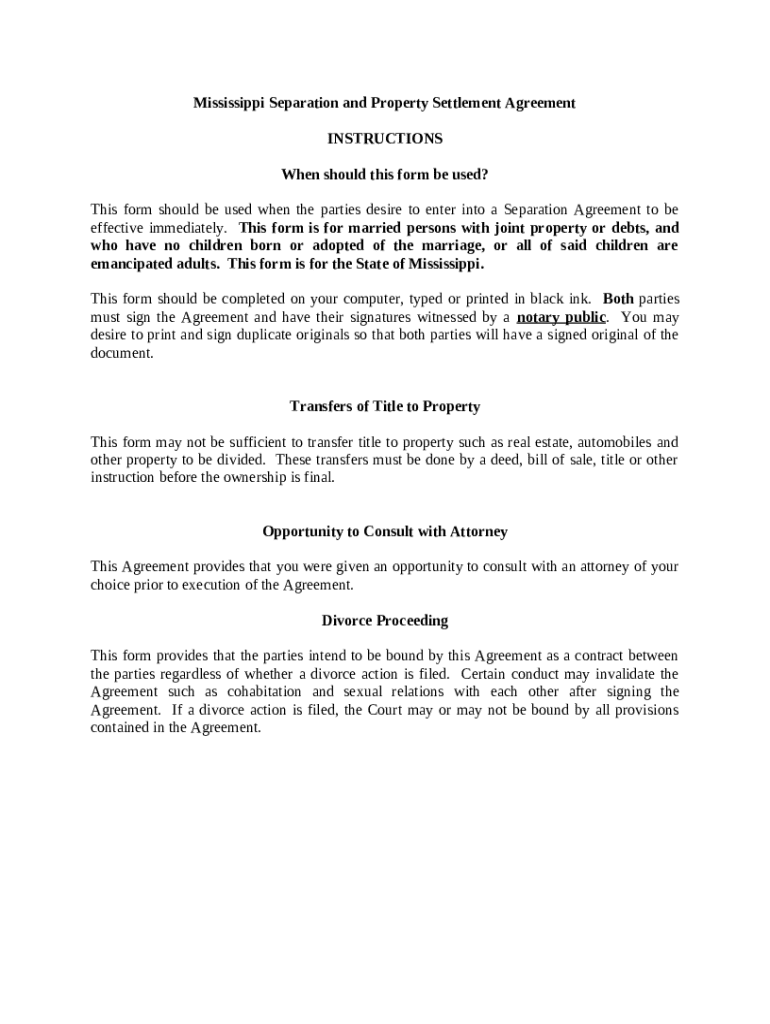 Complete Guide to the Mississippi Separation and Property Settlement Form
