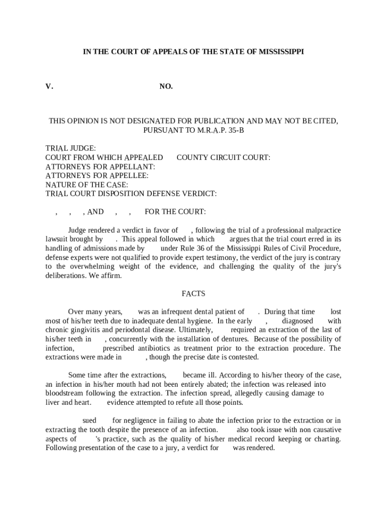 Mississippi has specific regulations regarding malpractice litigation that must be adhered to when drafting court documents. Understanding these local legal standards is crucial for any malpractice case in the region.