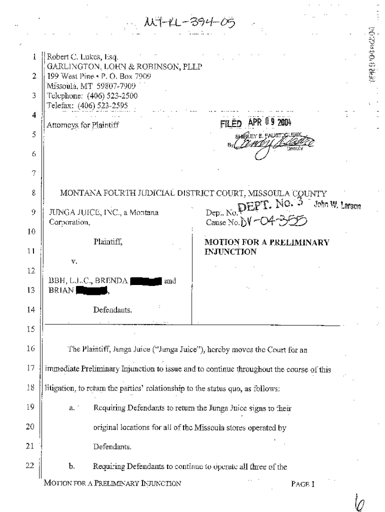 Get the free A05 Motion for a Preliminary Injunction