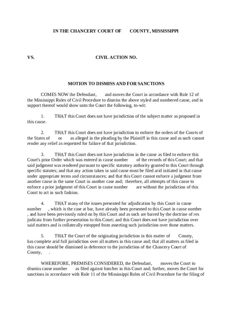 Chancery Courts in Mississippi are specialized courts that handle equity matters, including family law and some civil cases. These courts operate under specific jurisdictional limits defined by state law. Understanding these limits is crucial when filing a motion to dismiss, as they can significantly affect the outcome of your motion.