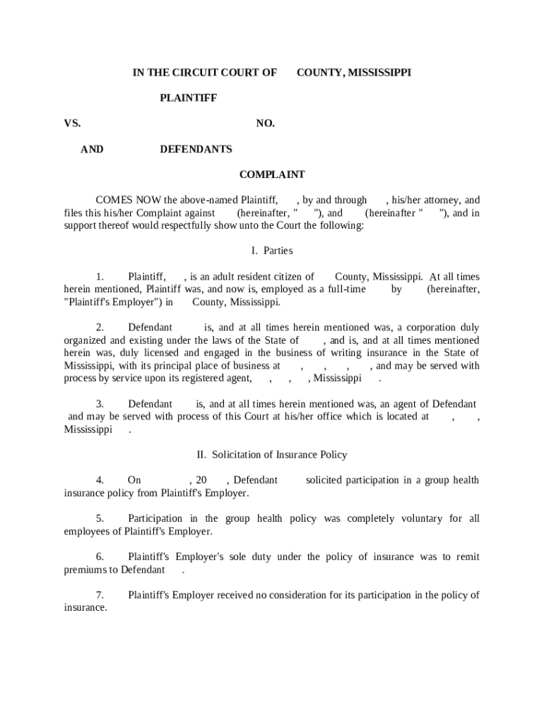 Insurance Refusal to Pay and Bad Faith Claim: This is a Mississippi form that complies with all Mississippi codes and statutes. A Complaint based on Insurance Refusal to Pay and Bad Faith Claim