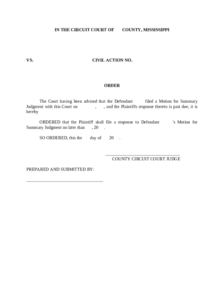 Get the free Order to File a Response to Motion for Summary Judgment template