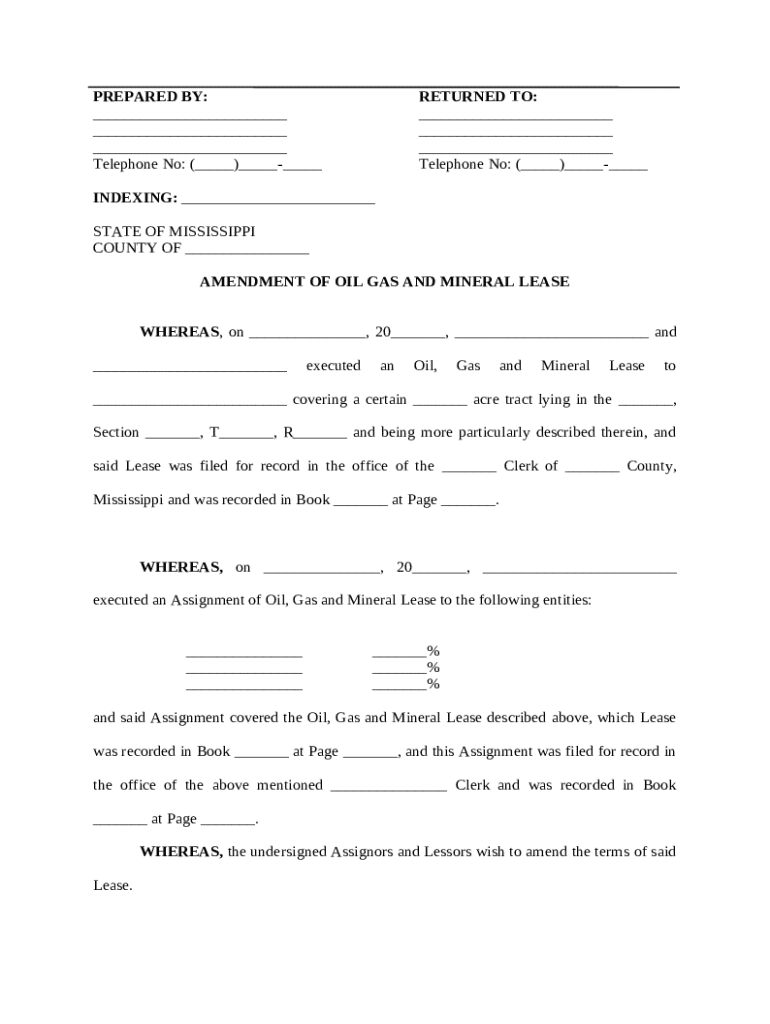 Get the free Amendment to Oil Gas and Mineral Lease template