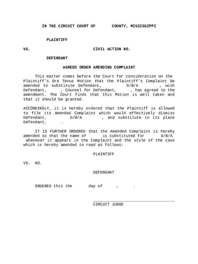 Ultimate Guide to the Agreed Order Amending Complaint Form