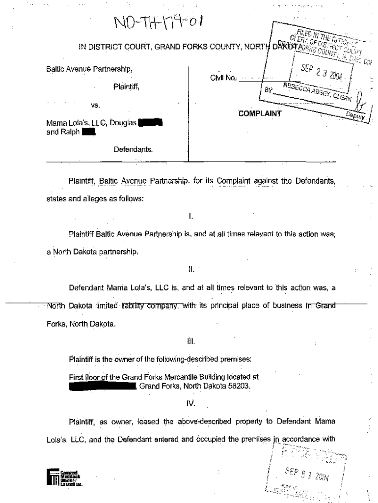 Get the free A01 Complaint for Eviction