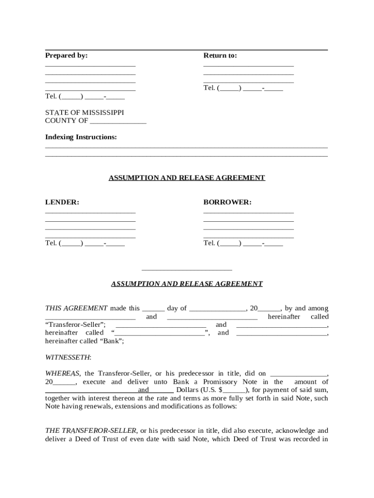 An assumption and release agreement is a legal document that allows one party to assume the obligations of another party while releasing the original party from those obligations.