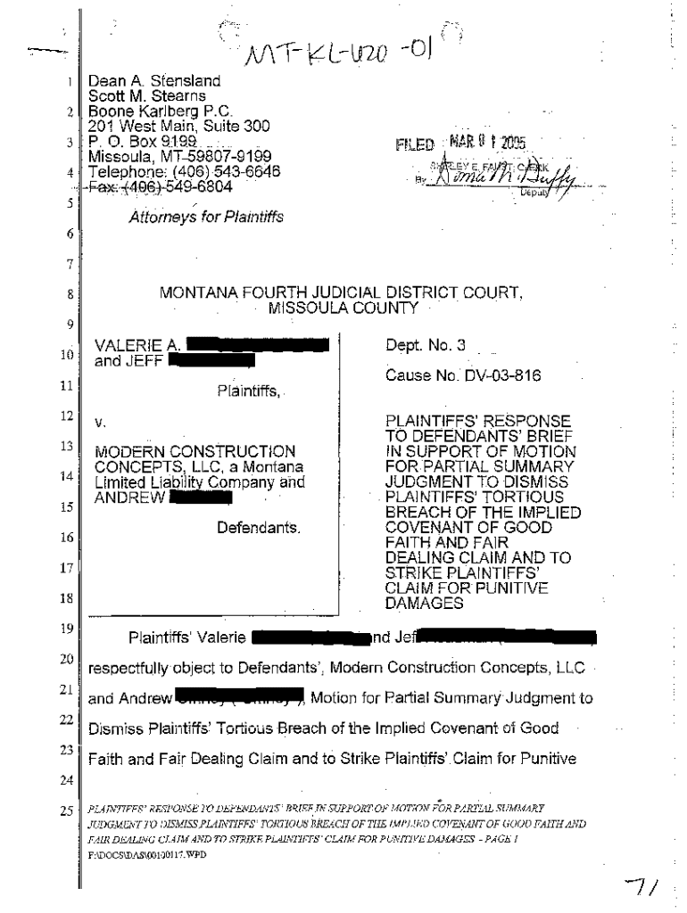 Get the free A05 Plaintiff's Response to Defendants' Brief in Support of Motion