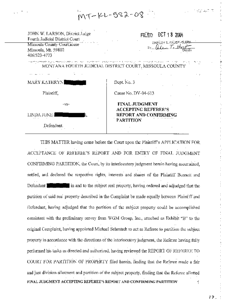 Get the free A08 Final Judgment Accepting Referee's Report and Confirming Partition