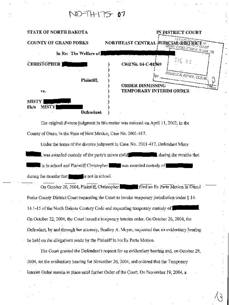 Get the free A07 Order Dismissing Temporary Interim Order