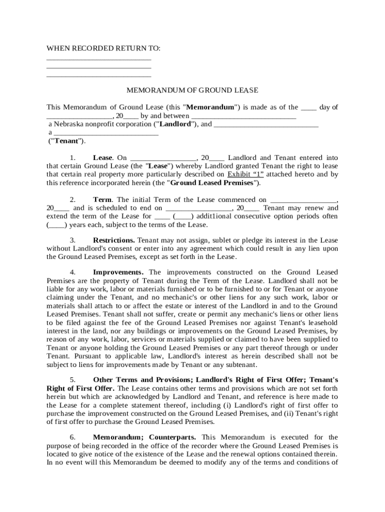 Get the free Memorandum of Ground Lease template
