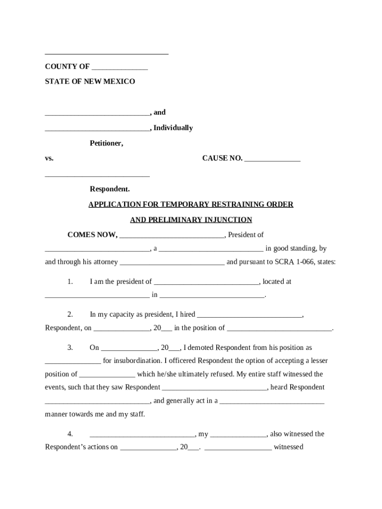 Get the free Application for Temporary Restraining Order and Preliminary Injunction template