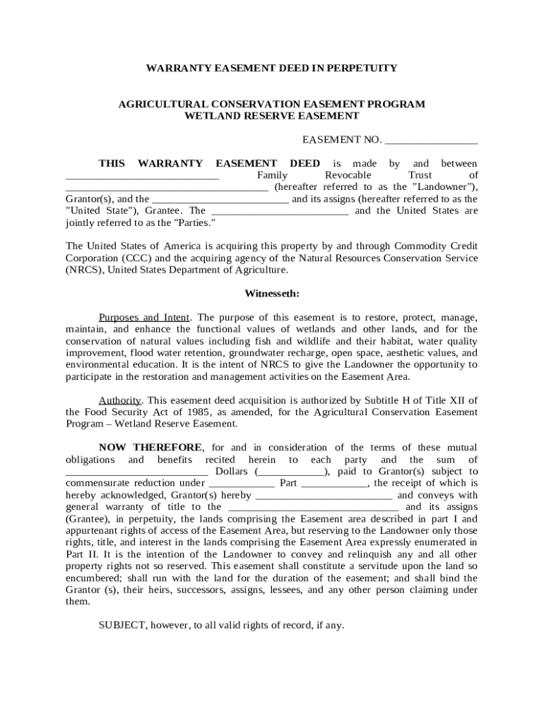 Get the free Warranty Easement Deed in Perpetuity template