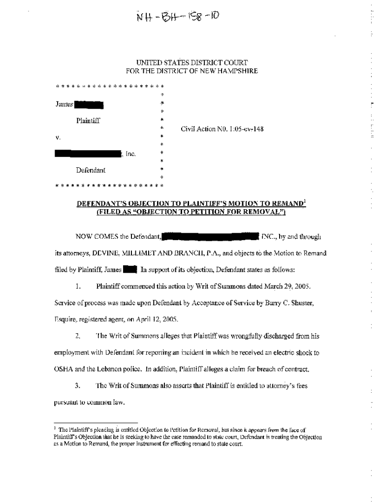 Get the free A10 Defendant's Objection to Plaintiff's Motion to Remand