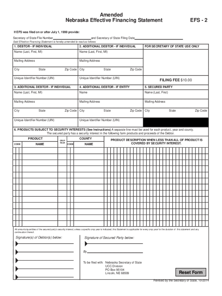 A Nebraska Effective Financing Statement is a legal document used to perfect a security interest in personal property under Nebraska law.