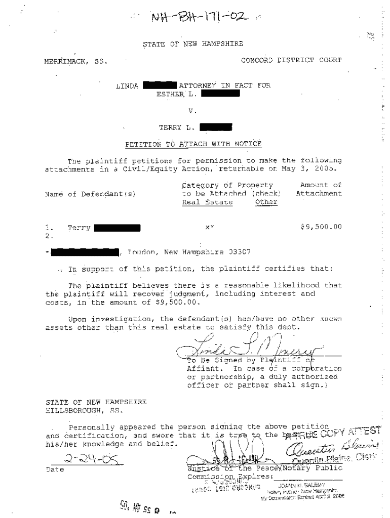 Get the free A02 Petition to Attach Real Estate with Notice