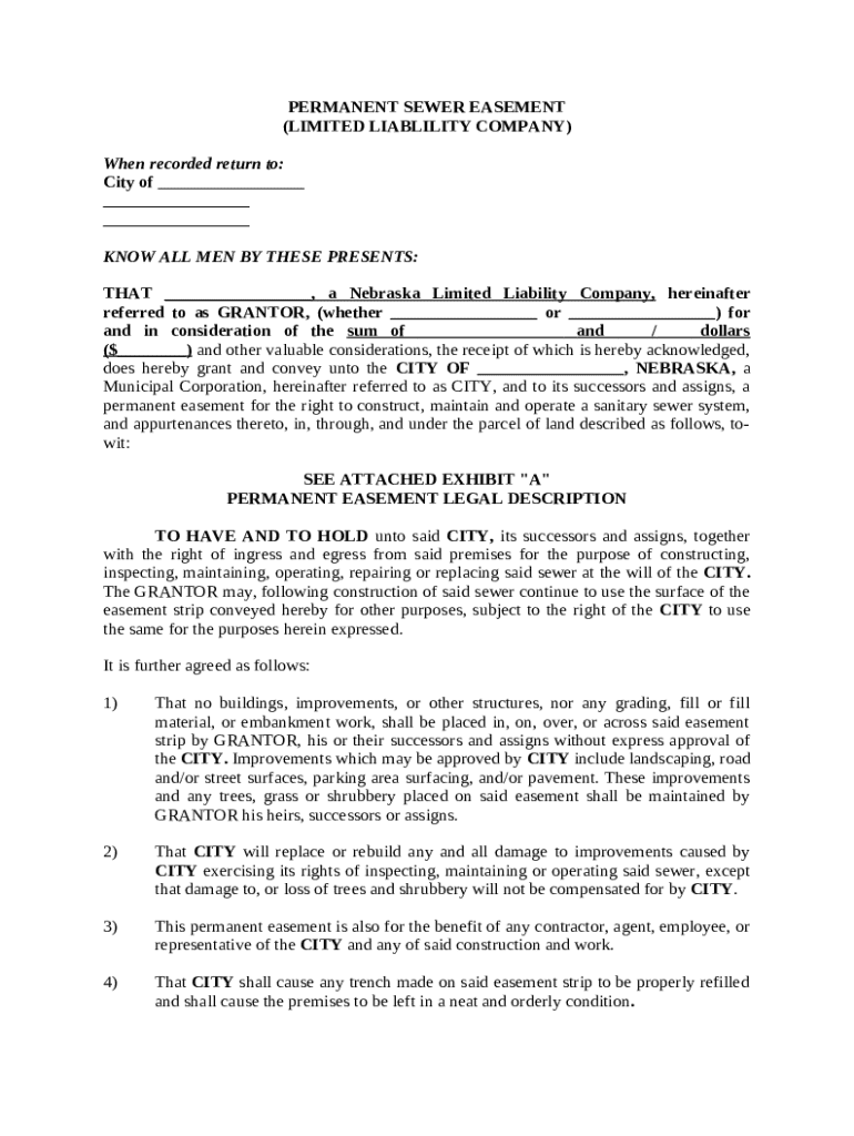 Get the free Permanent Sewer Easement by a LLC template