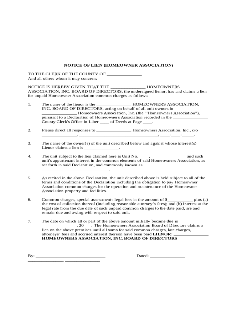 Name of lienor: Typically the Homeowners Association Inc Board of Directors.