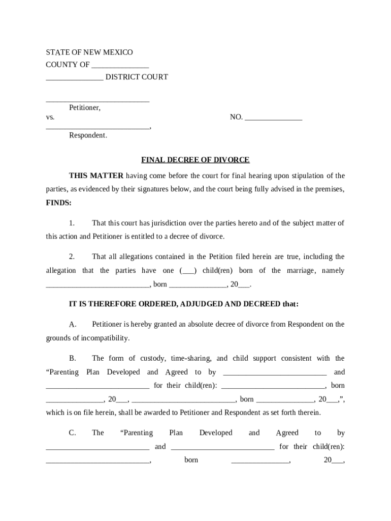 Each state has its own requirements for the final decree of divorce, and New Mexico is no exception. Understanding these details is crucial for a successful filing.