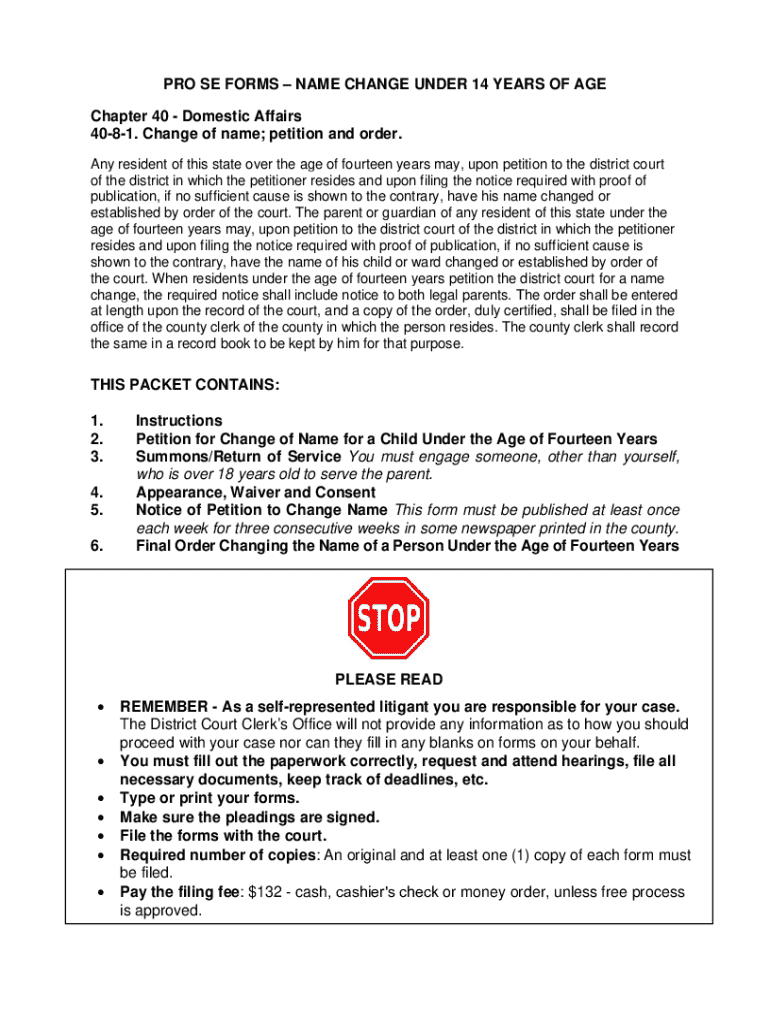 Get the free Name Change Instructions and Forms for a Minor Under Age 14 - Grant, Luna, and Hidal...