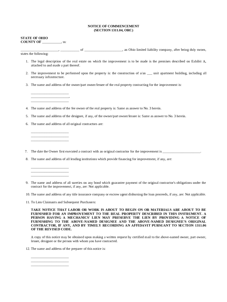 In Ohio, complying with legal requirements for the notice of commencement is essential to avoid potential legal issues. These requirements are specified in state statutes, serving as a guide for property owners and contractors.