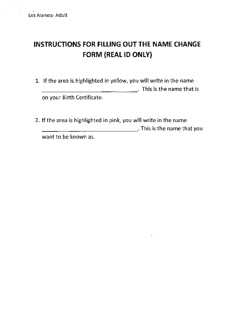 Get the free Name Change Instructions and Forms - Adult Name Change - Los Alamos County Only