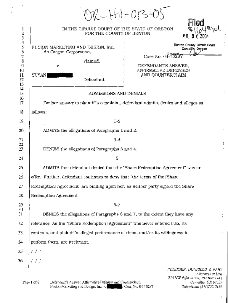 Get the free A02 Defendant's Answer, Affirmative Defenses, and Counterclaim